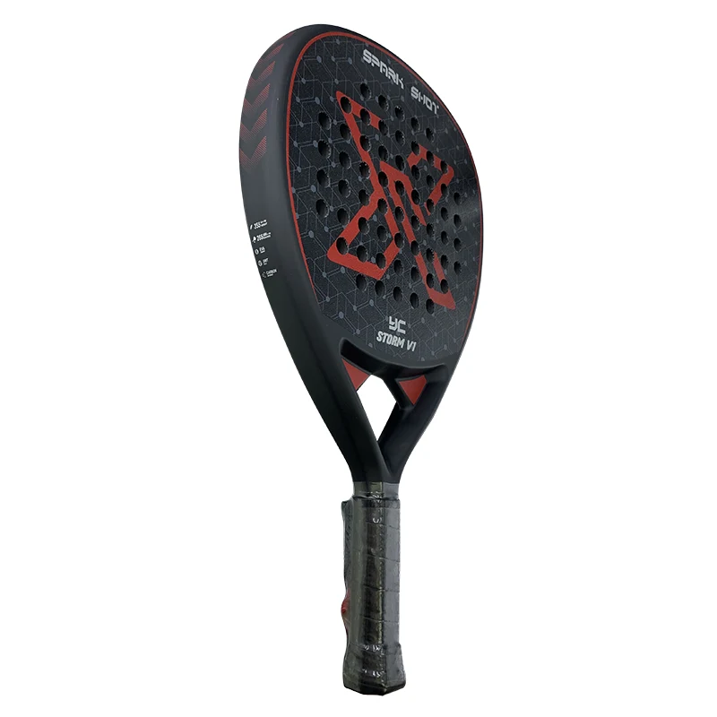 STORM V1oferă un amestec perfect de putere și control pentru jucătorii avansați care doresc să accelereze jocul. Fața lovită combină cea mai bună performanță a fibrei de carbon și a fibrei de sticlă, fețele sale au Grit Spin, care îmbunătățește generarea de spin la fiecare lovitură. Include, de asemenea, capacul pentru fund Ungrade și cureaua din neopren, făcându-l mai sigur și complet personalizabil.